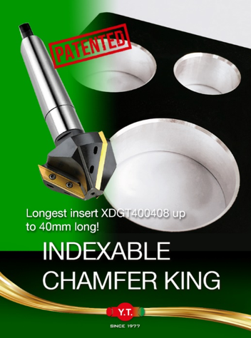 ¿Alguna vez has visto un avellanador de gran diámetro en diseño INDEXABLE? ¡Aquí lo tienes! El avellanador indexable patentado de Y.T. Tools ofrece una solución rentable para ti, especialmente para las necesidades de biselado grande. Las plaquitas de carburo con 2 filos de corte no solo logran una buena vida útil de la herramienta, sino que también resultan muy convenientes para los clientes al cambiar la plaquita sin tener que quitar toda la herramienta de la máquina.
